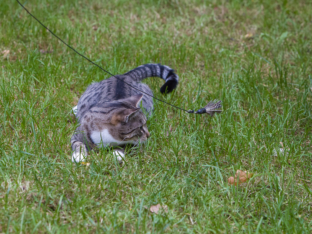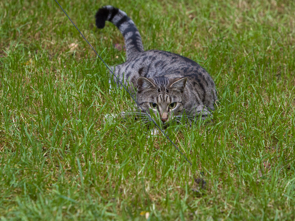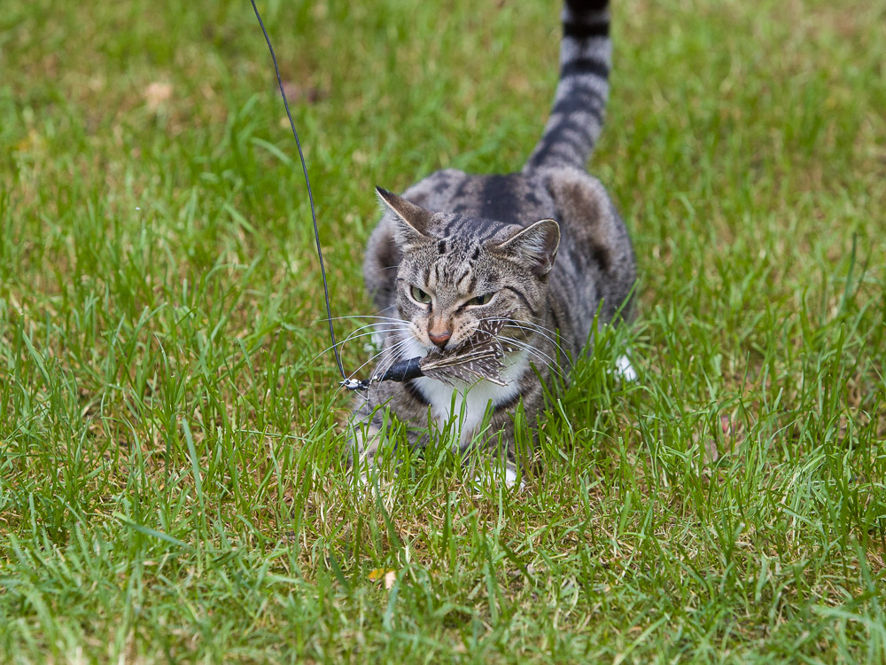Sie wundern sich vielleicht, wo Blacky, der vierte schwarze Kater ist, der sonst auch immer für das Angelspiel zu haben ist? Der ist auch im Garten unterwegs, hat aber ganz andere "Sorgen".